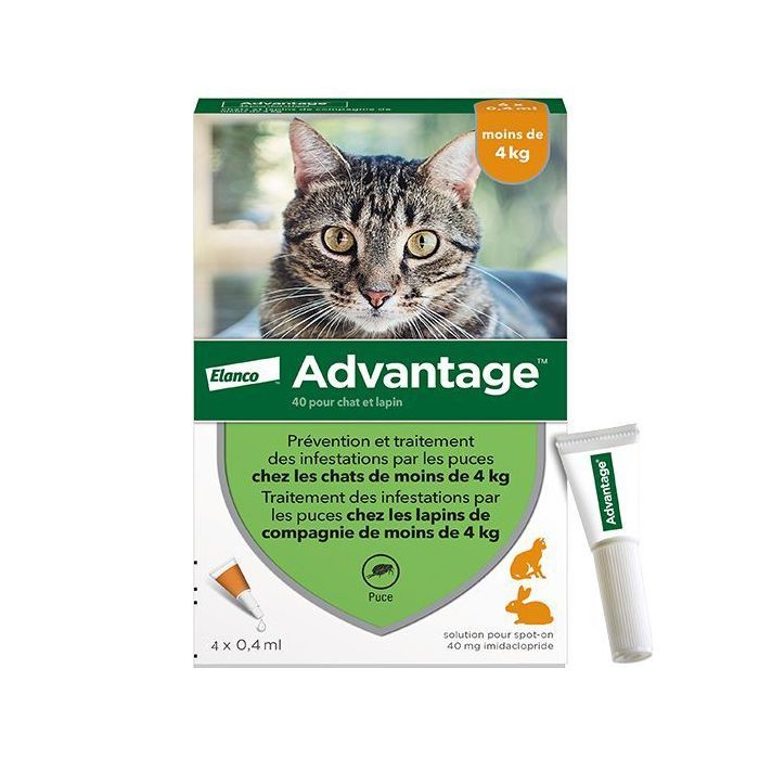 תיאור / advantage אדוונטאג' אמפולות להדברת פרעושים לחתול עד 4 ק"ג