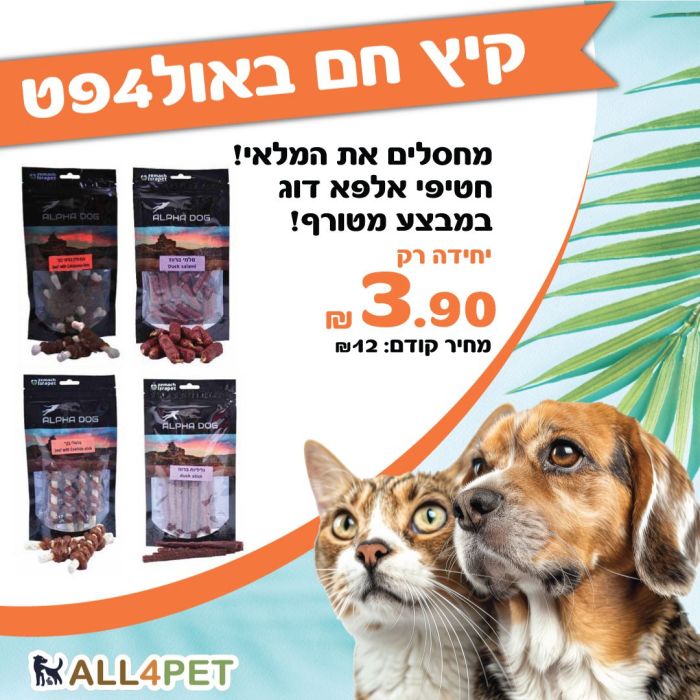 מבצעי אוגוסט - אלפא דוג 80 גרם חטיף לכלבים במחיר שאסור לפספס!!!