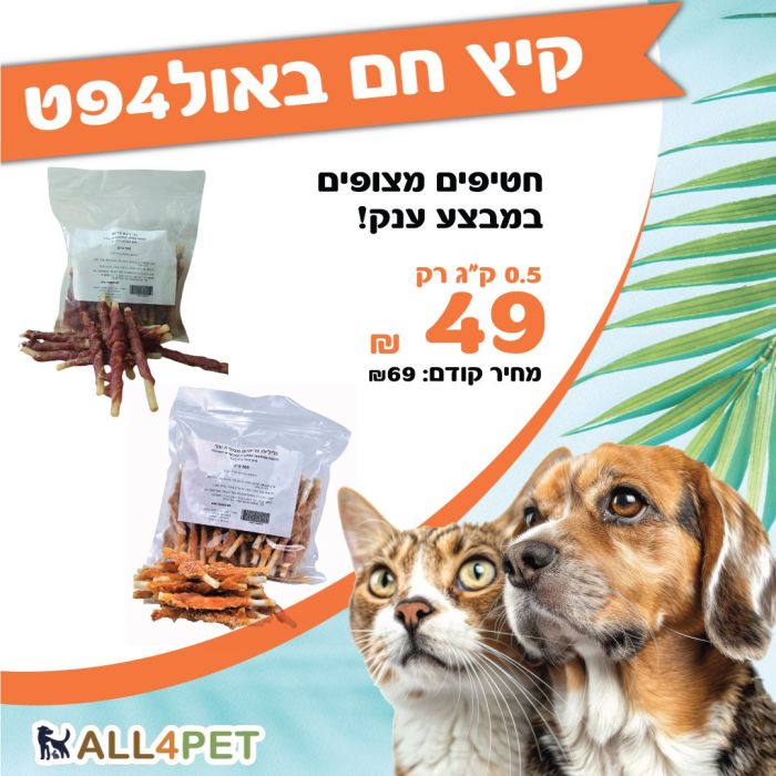 מבצעי אוגוסט - חטיף מקלות מצופים בשר לכלב במבצע חסכוני במיוחד!!!