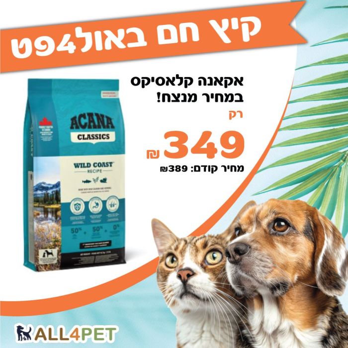 אקאנה קלאסיקס 14.5 ק"ג מזון יבש לכלבים בוגרים בטעם דגים ב349 ש"ח בלבד!