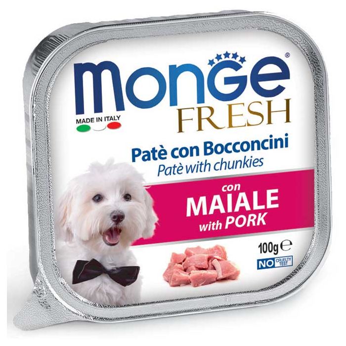 MONGE מונג 100 גרם מזון מזון רטוב (מעדן) לכלב בטעם נתחי חזיר
