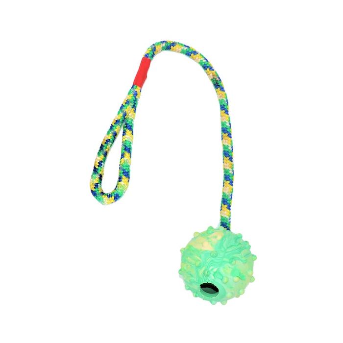 צעצוע לכלב חבל עם כדור גומי קשיח