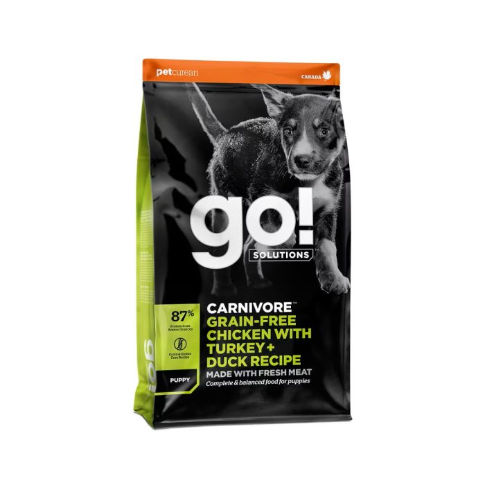 Go גו - מזון יבש ללא דגנים לכלבים גורים בטעם עוף הודו וברווז (CARNIVORE)