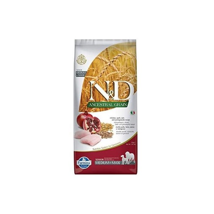 תיאור / N&D אן די 12 ק"ג מזון יבש מופחת דגנים לכלבים מבוגרים בטעם עוף ורימונים