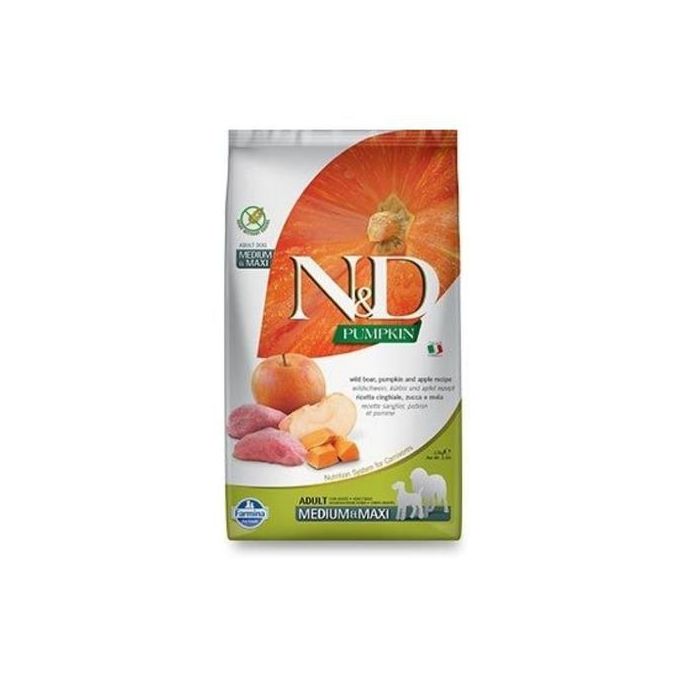 N&D אן די 12 ק"ג מזון יבש ללא דגנים לכלבים בוגרים חזיר ודלעת