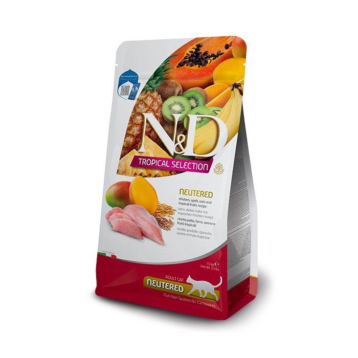 N&D אן די 1.5 ק"ג מזון יבש לחתולים בוגרים מסורסים בטעם עוף (טרופיקל)