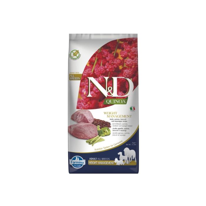 N&D אן די - מזון יבש דיאטטי ללא דגנים לכלבים בוגרים כבש וקינואה (WEIGHT MANAGEMENT)